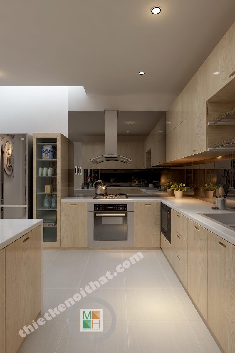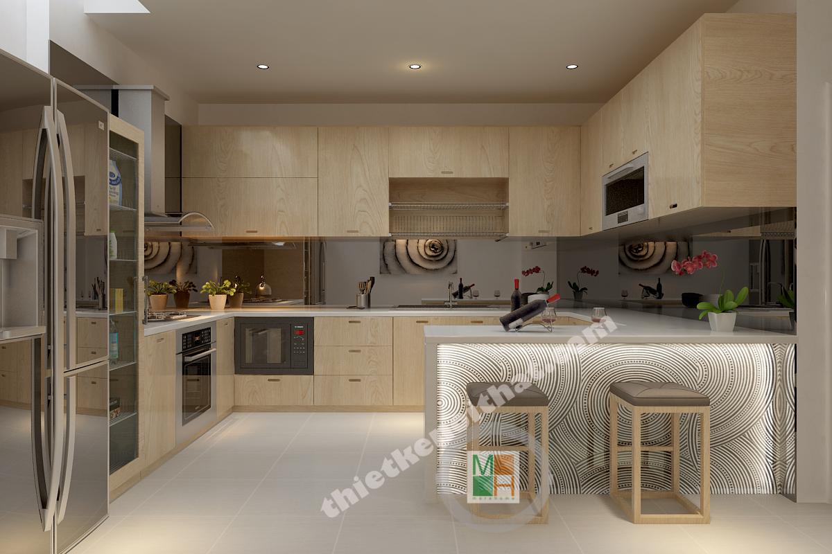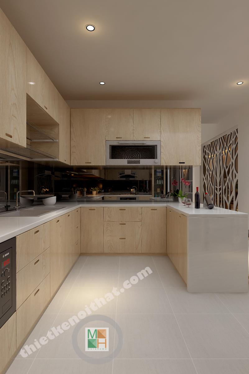 Tủ bếp gỗ công nghiệp dán verneer - mẫu 004