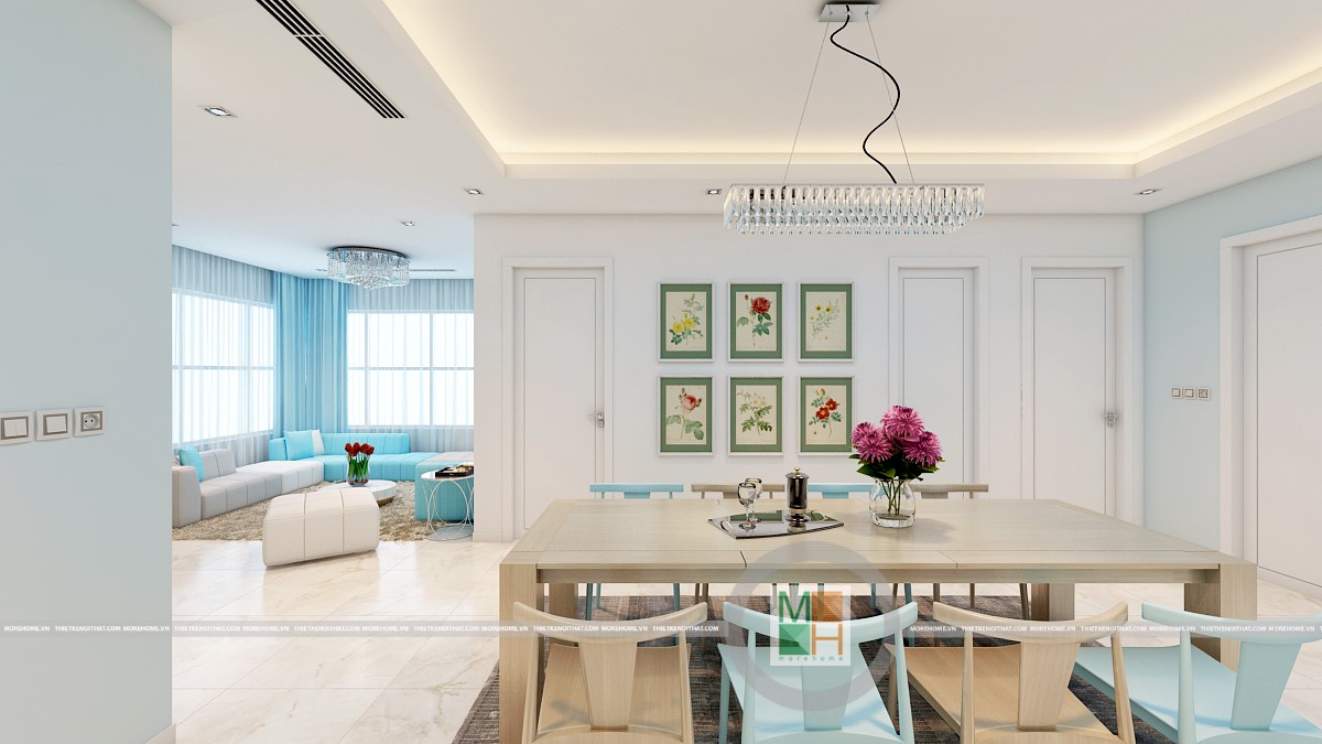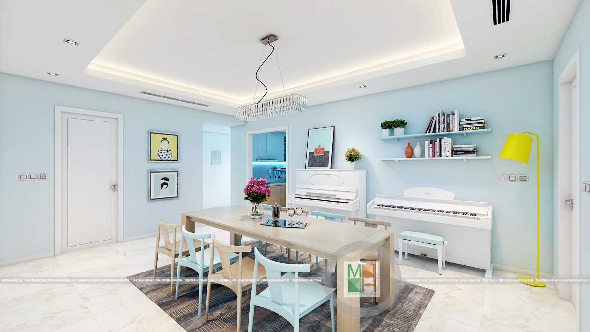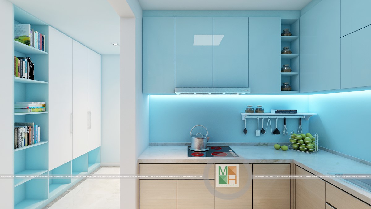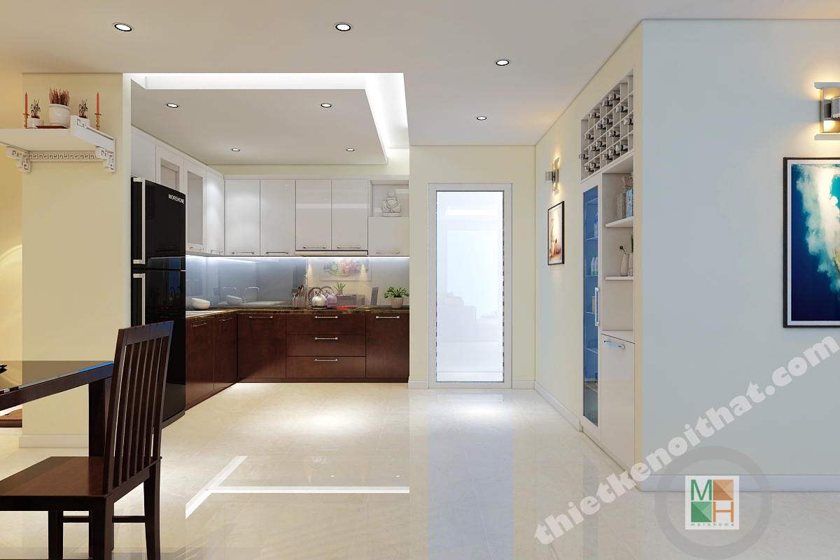 Tủ bếp laminate kết hợp với tủ bếp trên acrylic tạo không gian sang trọng, thanh lịch