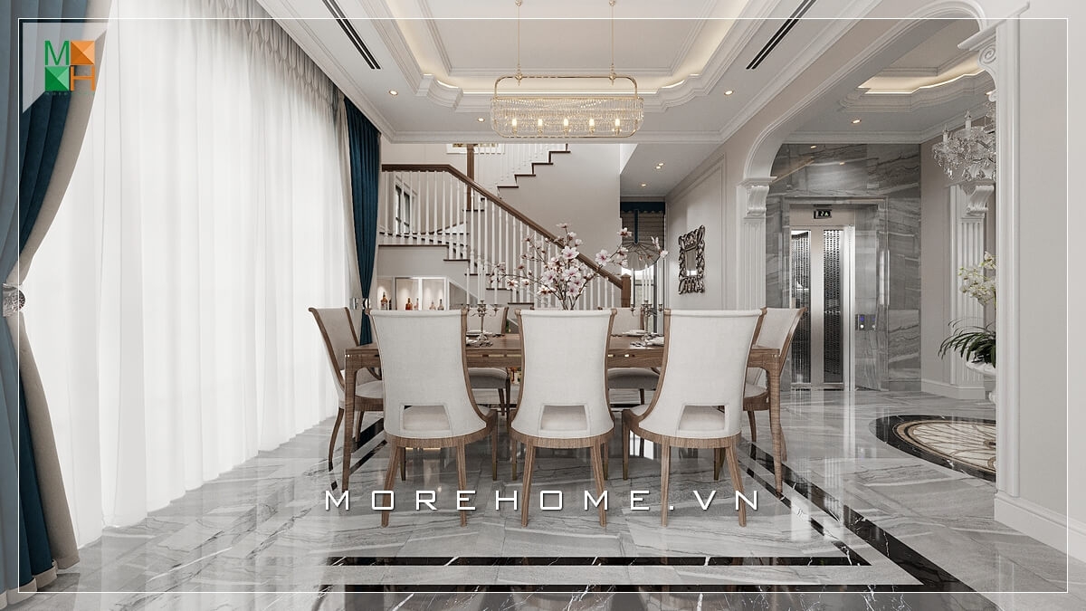 Thiết kế nội thất phòng ăn biệt thự tân cổ điển sang trọng và cao cấp cho nhà biệt thự