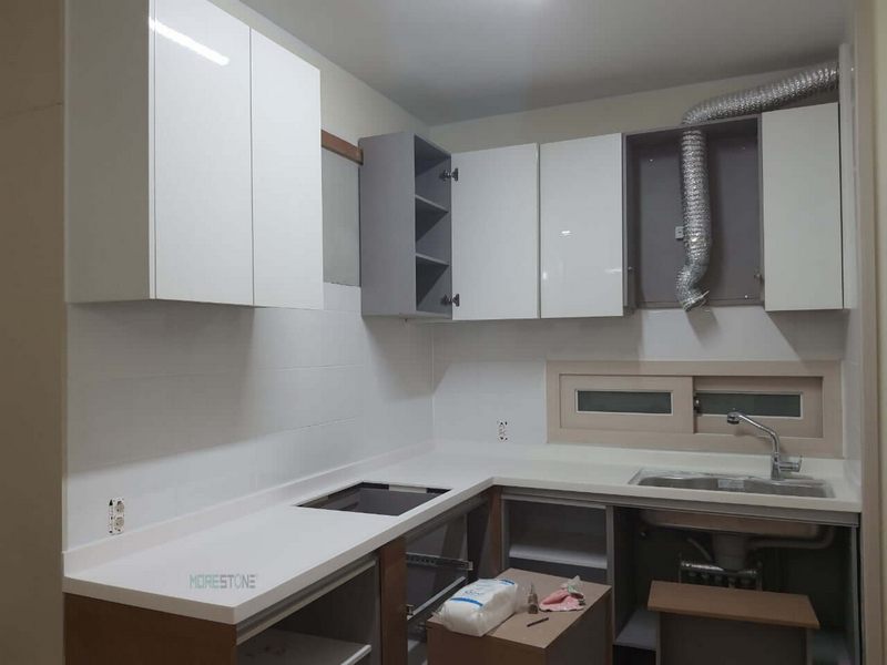 Việc thi công đá ốp bếp nhân tạo Casla tại chung cư hiện đại với tone màu trắng nhẹ nhàng sẽ góp phần tạo nên sự sang trọng và tinh tế hơn cho không gian nhà bếp.